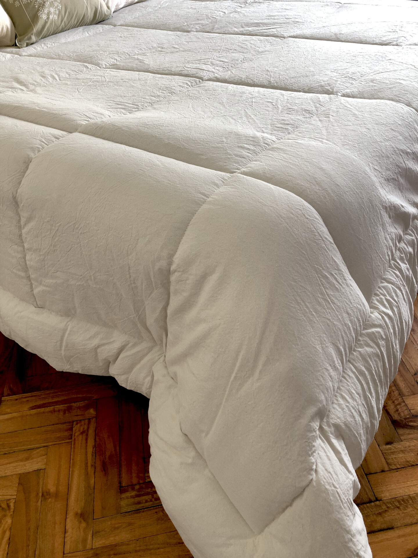 Descubrí el equilibrio perfecto entre confort y estilo con nuestro acolchado de tela tusor en color natural. Su textura suave y su tonalidad neutra lo convierten en un imprescindible para quienes buscan un descanso lleno de calidez y sofisticación.