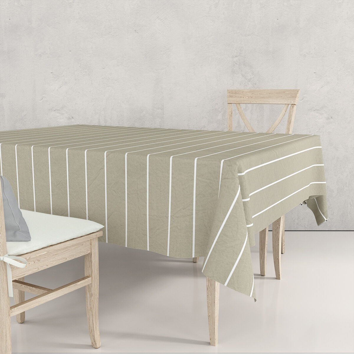 Confeccionado en 100% algodón de alta calidad, este mantel combina la suavidad característica del tusor con la frescura de un diseño a rayas en tono beige. Su estilo versátil lo convierte en el complemento ideal para dar un aire moderno y relajado a tus comidas, ya sea en el día a día o en ocasiones especiales.