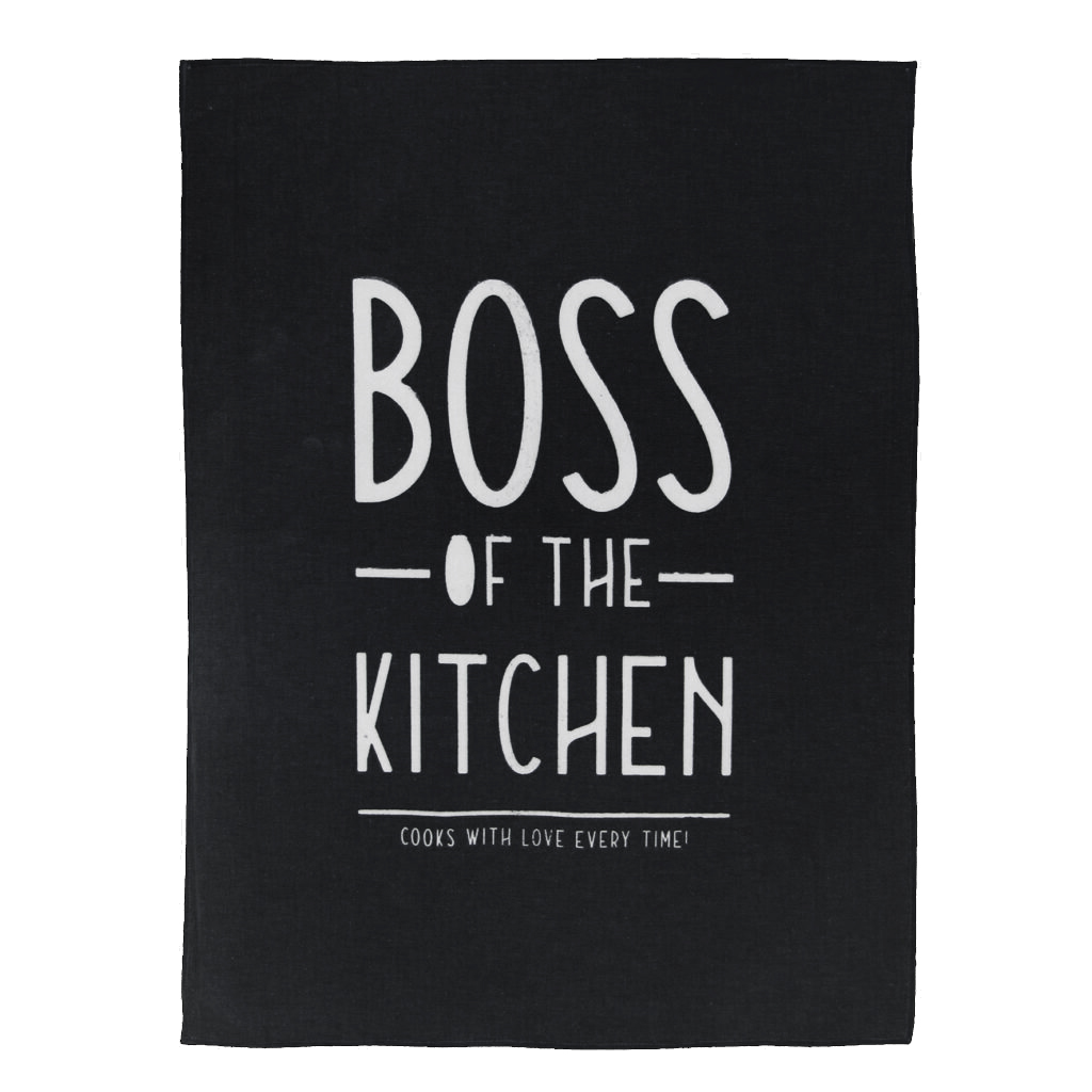 Repasador de gabardina, práctico y elegante, perfecto para cualquier cocina. De color negro con estampado blanco, combina estilo y funcionalidad para facilitar tus tareas diarias.