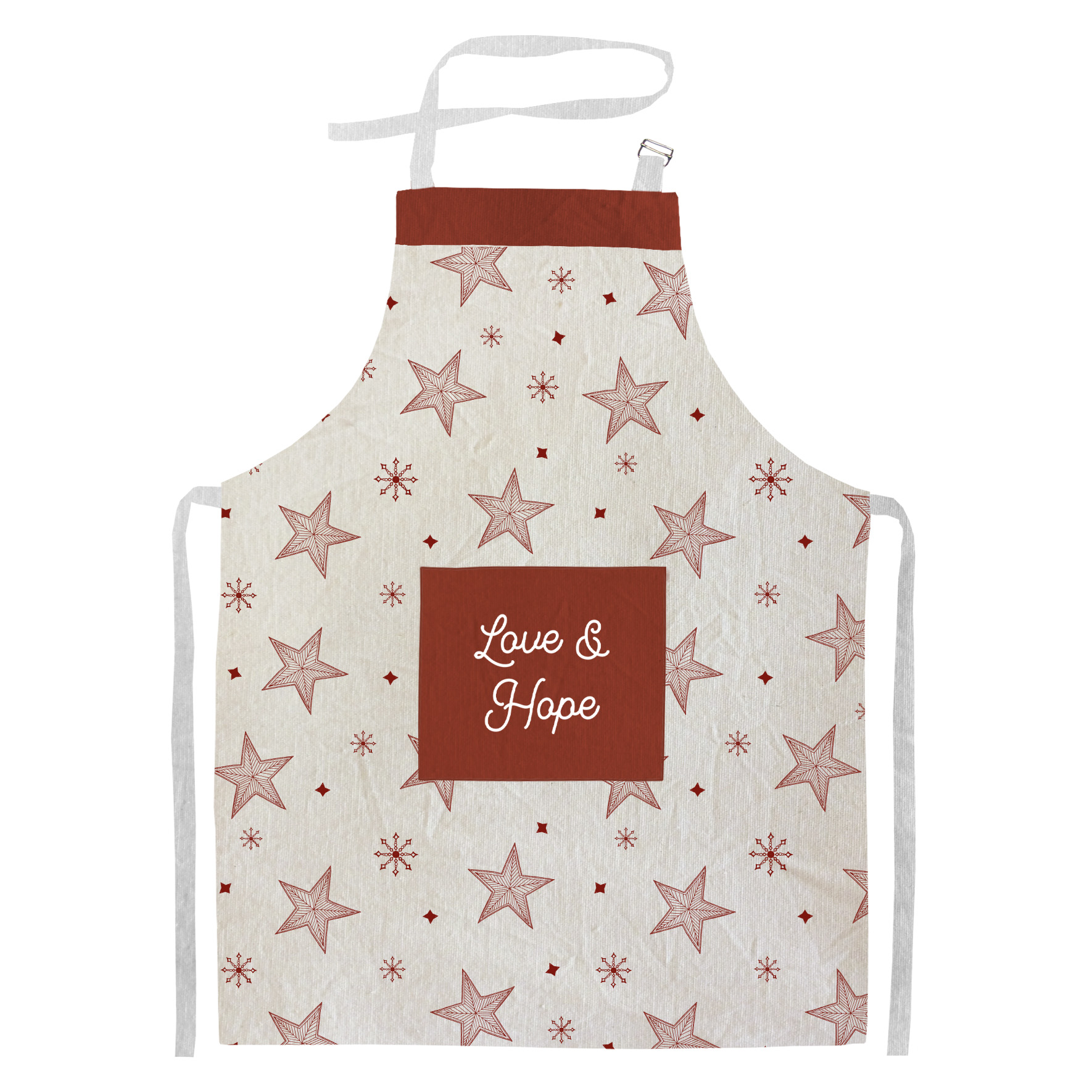 Confeccionado en tela tusor 100% algodón, este delantal en color natural con estampado en rojo es la combinación perfecta de estilo y comodidad. Su largo ajustable permite adaptarlo fácilmente, brindando un ajuste cómodo para cualquier usuario.