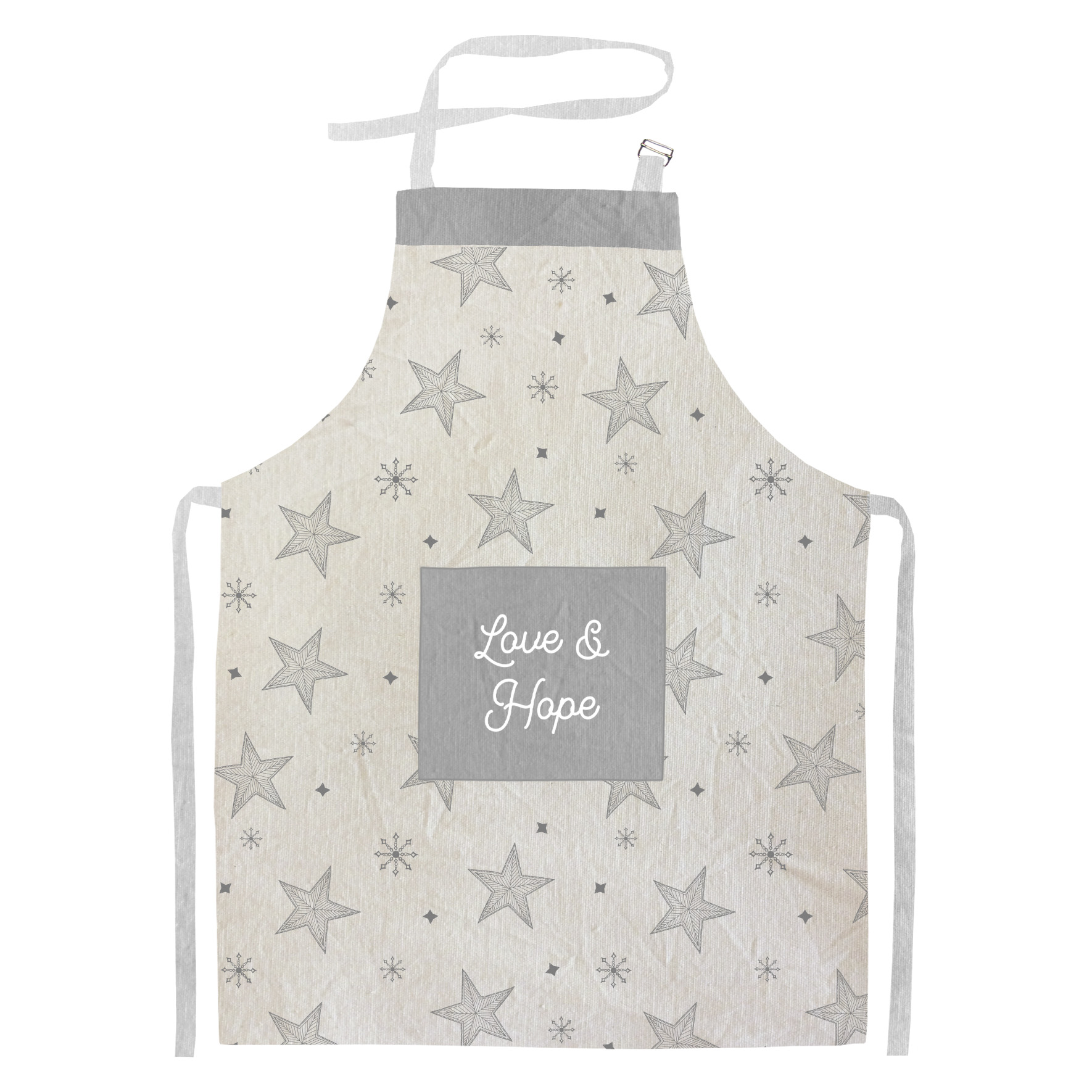 Confeccionado en tela tusor 100% algodón, este delantal en color natural con estampado gris es la combinación perfecta de estilo y comodidad. Su largo ajustable permite adaptarlo fácilmente, brindando un ajuste cómodo para cualquier usuario.