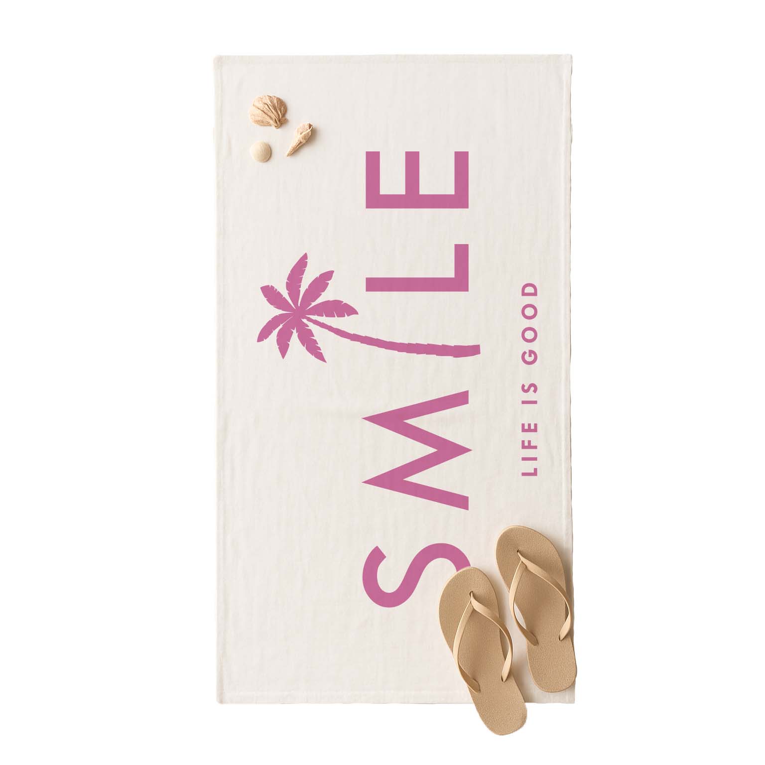Disfrutá del verano con nuestra lona playera de brin en color natural con estampado rosa, perfecta para acompañarte en la arena, el pasto o junto a la pileta. Su tela resistente y liviana la hace fácil de transportar, doblar y guardar sin ocupar demasiado espacio.