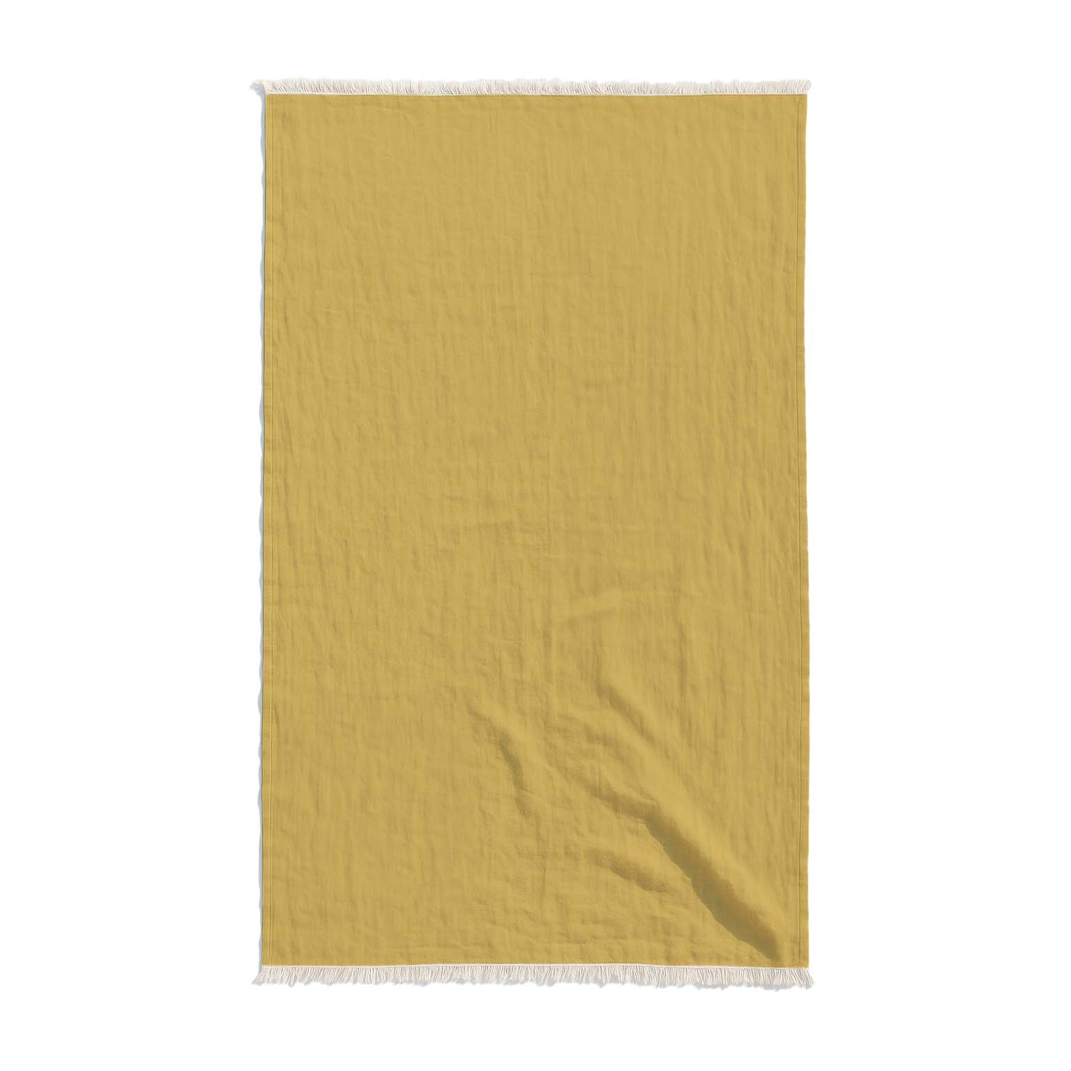 Llevá el verano con vos con nuestra lona playera de tusor con flecos en color mostaza. Suave, liviana y con un diseño bohemio, es ideal para disfrutar del sol en la playa, el parque o cualquier salida al aire libre.