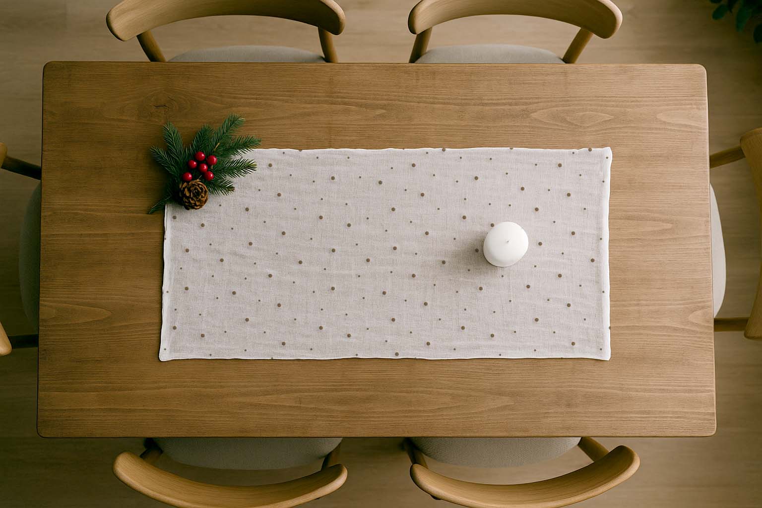 Este centro de mesa de gasa en color tiza con estampado vison es la opción perfecta para darle un toque delicado y elegante a tu mesa. Su diseño liviano y atemporal se adapta fácilmente a diferentes estilos de decoración, aportando frescura y sofisticación a tu comedor o sala.