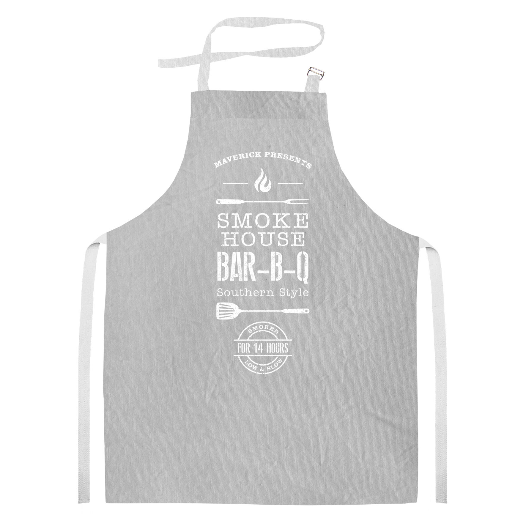 Delantal de tusor en color gris con estampado blanco, diseñado para brindar comodidad y estilo en la cocina, el taller o cualquier actividad creativa. Confeccionado en tela liviana y resistente, protege de manchas y salpicaduras sin sacrificar movilidad.