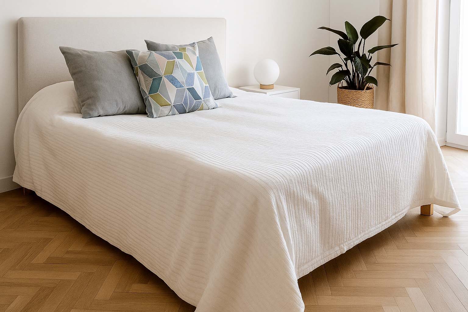 Elevá el estilo de tu dormitorio con nuestro cubrecama de tela texturada Venecia, confeccionado en 100% algodón. Su color tiza aporta una sensación de frescura y elegancia que se adapta a cualquier ambiente, convirtiéndolo en el complemento ideal para una decoración sofisticada.