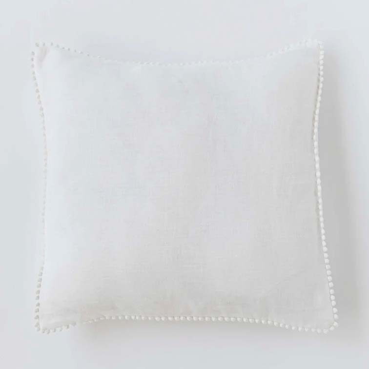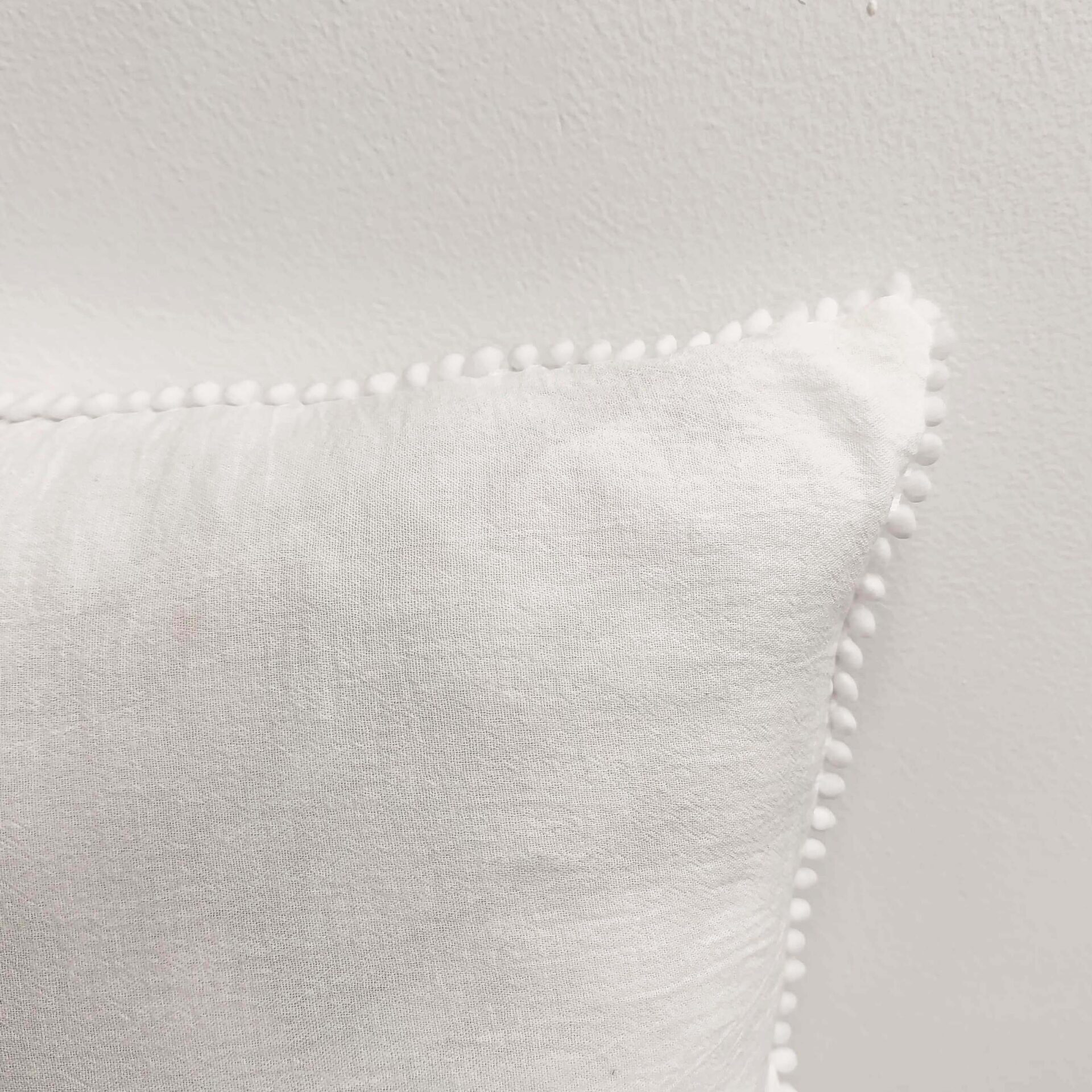 Este almohadón de tela gasa en color liso, decorado con pequeños pompones alrededor, es la opción perfecta para darle un toque sofisticado y moderno a tu hogar. Su diseño sencillo y elegante, combinado con los pompones, aporta frescura, textura y un detalle delicado a cualquier ambiente.