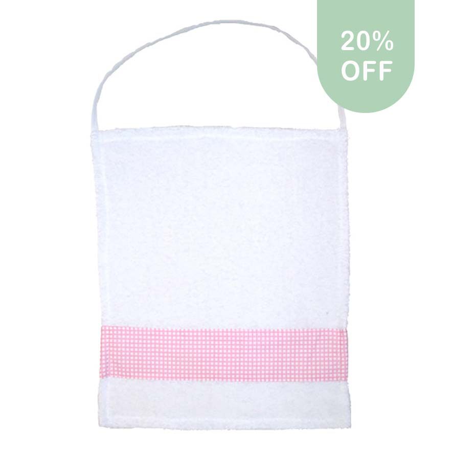 Toalla de microfibra con aplique de tusor en color rosa, ideal para acompañar a los más pequeños en el colegio. Su tela es suave, liviana y de secado rápido, perfecta para el uso diario.