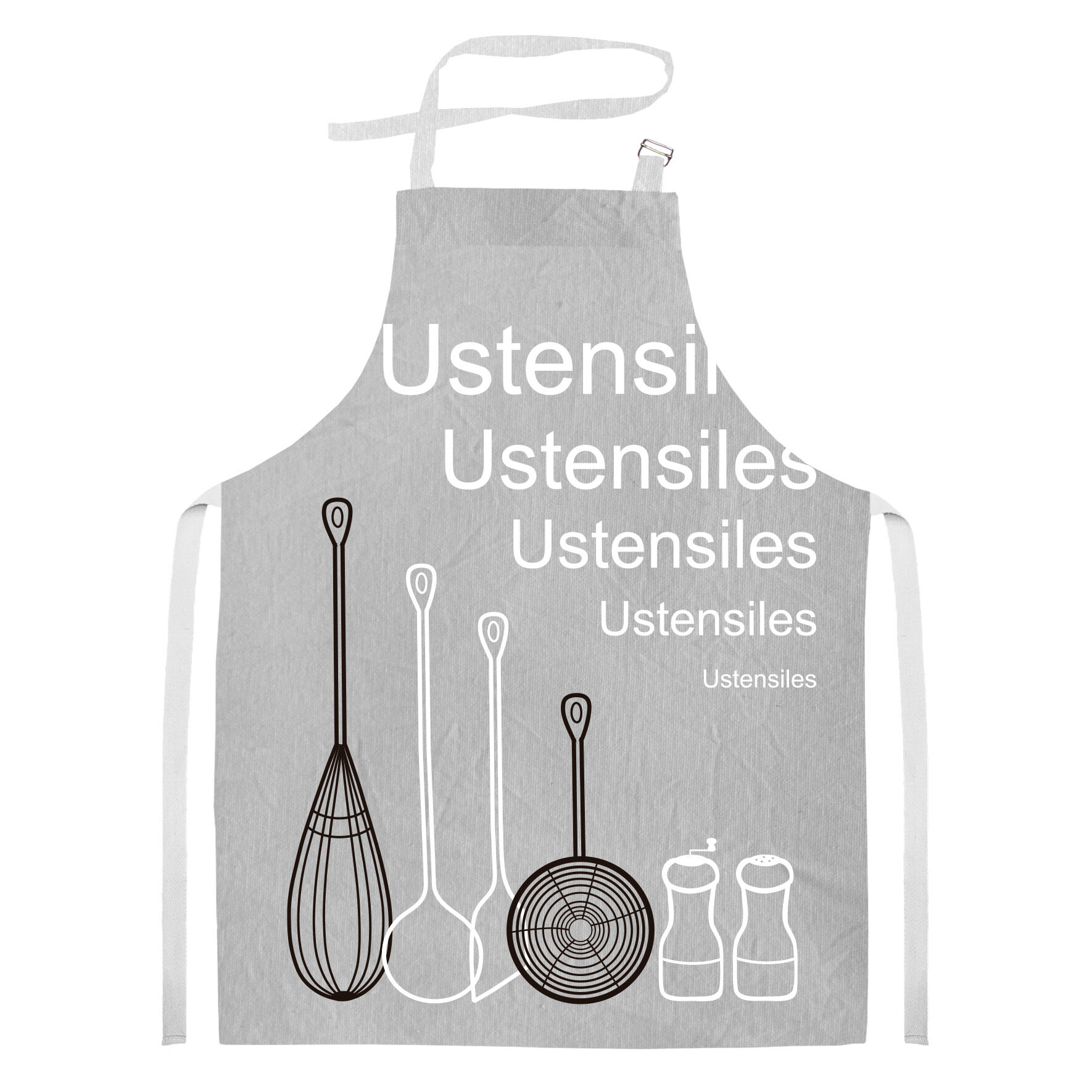 Delantal de tusor en color gris con estampado blanco y negro, diseñado para brindar comodidad y estilo en la cocina, el taller o cualquier actividad creativa. Confeccionado en tela liviana y resistente, protege de manchas y salpicaduras sin sacrificar movilidad.
