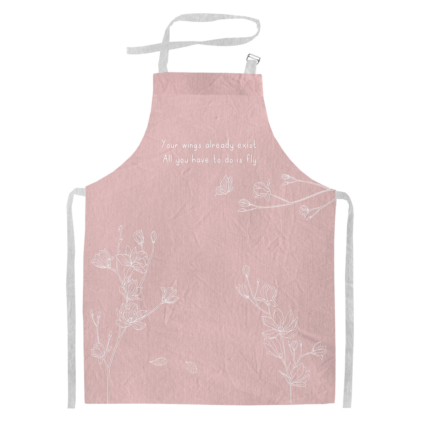 Delantal de tusor en color rosa con estampado blanco, diseñado para brindar comodidad y estilo en la cocina, el taller o cualquier actividad creativa. Confeccionado en tela liviana y resistente, protege de manchas y salpicaduras sin sacrificar movilidad.